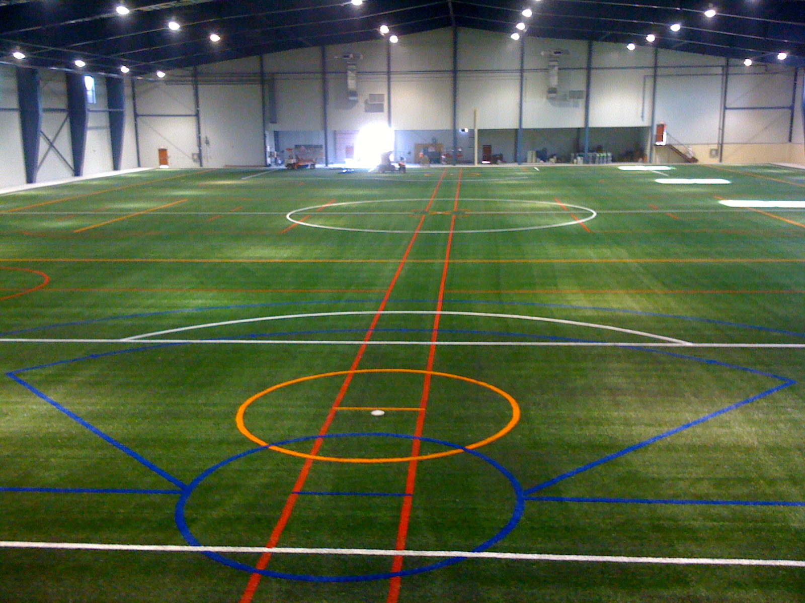 | Indoor field near to completion. Look at all these freaking lines I had to fit in the green turf !!! |