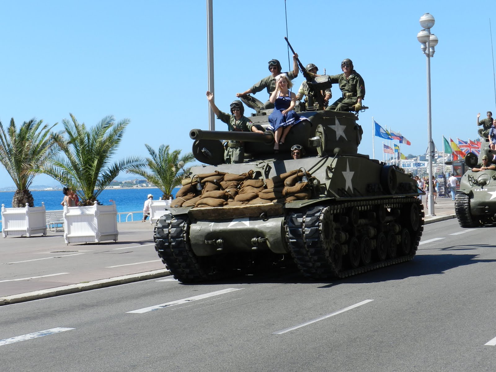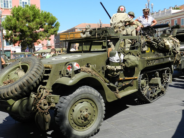 J’ai donc passé la journée à me promener sur la promenade principale et à me faire bronzer/brûler sur la plage. L’eau était chaude mais le soleil aussi; je me couche donc se soir avec mes lunettes de soleil bien étampées dans ma ‘’face’’. Entre une baguette au camembert et un sorbet ananas/figues, j’ai eu la chance de tomber sur la 67ième fête de la libération de NICE (surtout grâce à l’aide des canadiens on m’a dit !). Fêtée par une trentaine de vieux véhicules militaires tous restaurés à la perfection ! Beau spectacle et encore une fois, un brin d’histoire pour qu’on se couche moins cons.