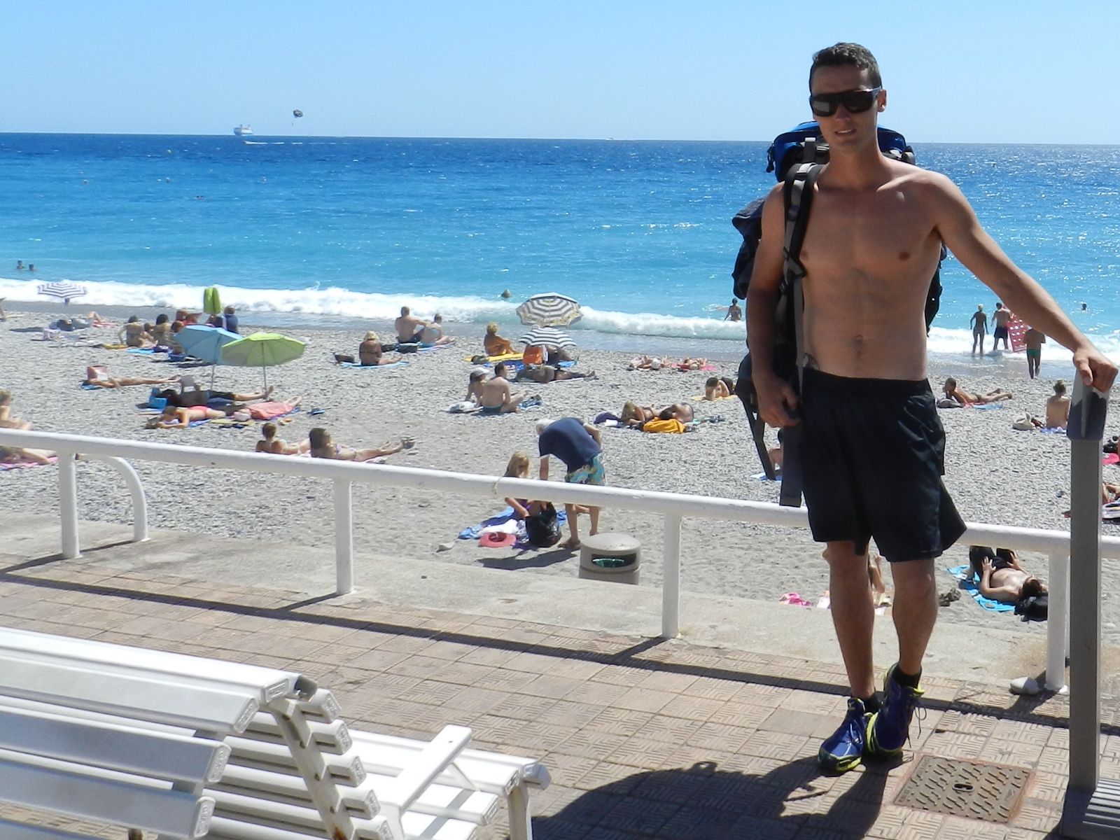 Today was a lot better ! Je suis descendu dans les rues de NICE qui, je vous assure, sont beaucoup plus rassurantes pendant le jour. Après avoir jeté un œil sur une des anciennes demeures de M.Napoléon Bonaparte, je me suis retrouvé au port de NICE. Un endroit qui abritait des dizaines de yacht incroyablement luxueux … J’ai toutefois laissé le port de côté en m’empressant d’arriver à la plage le plus vite possible. Wow … Deux kilomètres de plages, d’hôtels, de restos et de galets. Et oui, pas de sable à NICE !