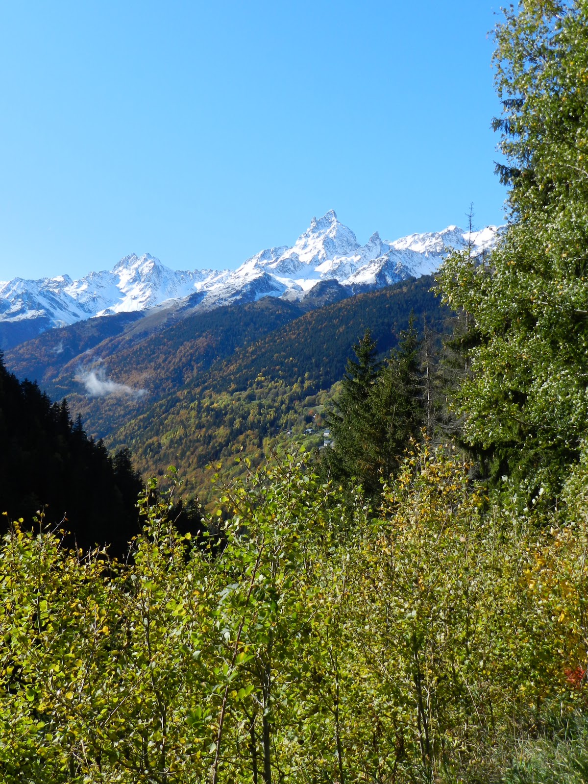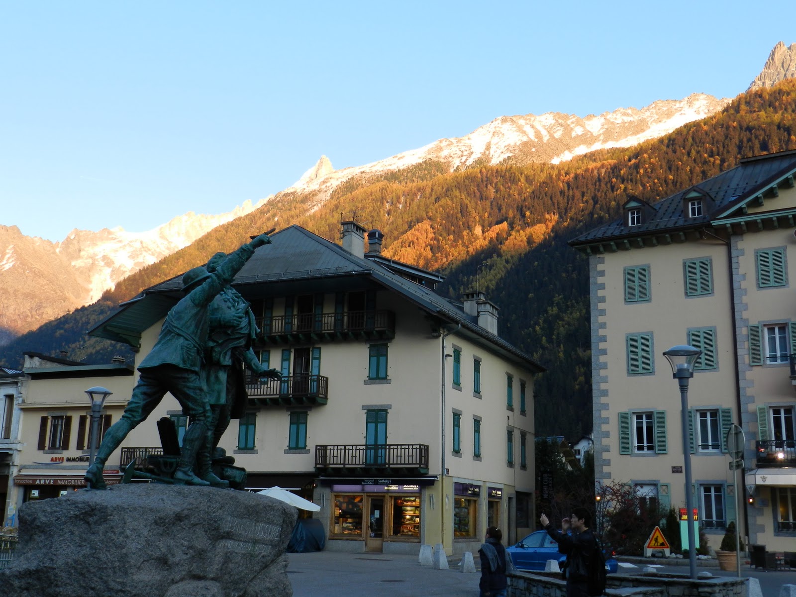 Après avoir déposé nos bagages dans notre chambre d’hôtel nous sommes descendus en ville pour profiter du reste de la journée. Imaginez-vous; être sur une rue inondée de petites terrasses par un temps frais, mais confortable - assister au coucher du soleil au pied du plus haut sommet d’Europe - et finir la soirée avec par un bon souper pizza pâtes sur le bord d’une galerie vitrée avec vue sur les montagnes … J’ai trouvé le bonheur inconditionnel hahaha
