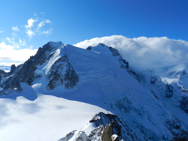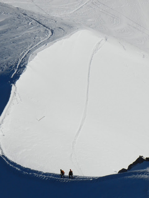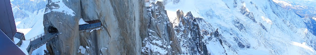 Nous étions déjà dans le téléphérique Chamonix-Aiguille du Midi aux premiers rayons du soleil le lendemain matin. Plus de 2800m de dénivelé en 15 minutes; de quoi vous faire exploser les tympans. L’aiguille du Midi - Cette station irréelle surplombant le village de ses 3800m d’altitude est quelque chose que je ne n’oublierai jamais. En fait, les mots manquaient pour décrire le panorama auquel nous étions confrontés et ils manquent toujours au moment où j’écris cet article… Je vous laisse juger vous-même de la beauté de la vue observée à la frontière Italie-France-Suisse.