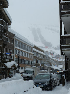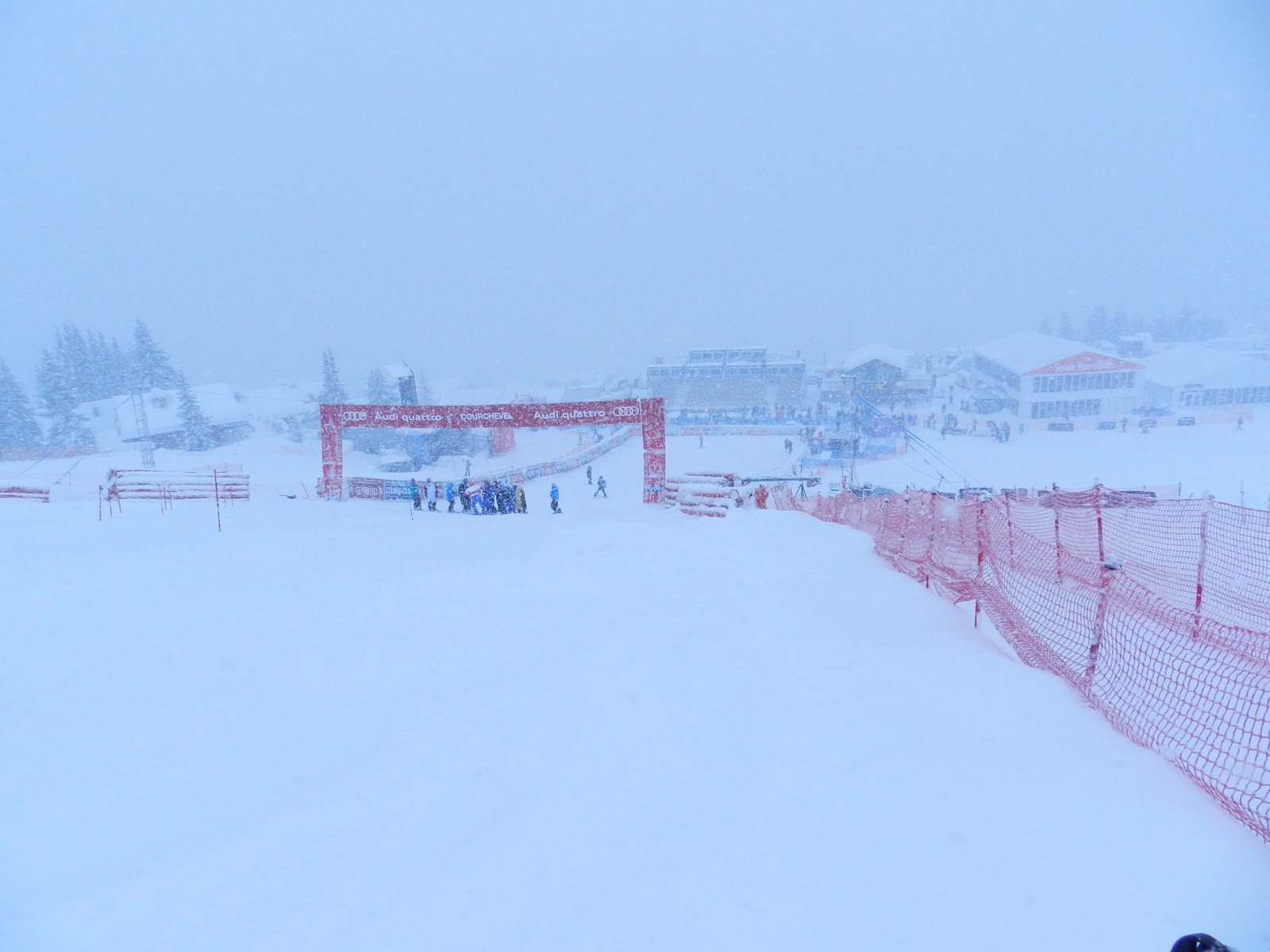 Il y deçà quelques semaines nous étions désespérés pour obtenir un peu de neige et dame nature nous a dédommagé avec des précipitations non-stop ces derniers temps. Le seul problème c'est que les épreuves de coupe du monde doivent se dérouler sur des pistes injectées à bloc. L'injection, c'est une opération qui nécessite une vingtaine de personnes pendant 10 heures et qui permet d'introduire un flux d'eau dans la neige à chaque 10cm, sur l'ensemble de la piste. Après nos nuits blanches d'injection sur la montagne, la piste de course s'est retrouvée glacée à fond - comme une patinoire. Malheureusement une autre chute de neige à fait en sorte que le Slalom de Samedi a été reporté au lendemain et le Géant annulé. Suite à une deuxième injection nocturne les coureuses et les officiels se sont mis d'accord pour approuver le programme du Dimanche. Pendant que les meilleures skieuses au monde dévalaient dans le parcours, j'étais en charge de m'assurer que les portes restaient debout et bien vissées au sol. Je dois vous dire, c'est assez stressant de changer une porte avant que la meilleure skieuse de Slalom de la planète, Marlies Schild, effectue une autre descente victorieuse. C'était une expérience incroyable sans même mentionner les virages que j'ai fait dans près d'un mètre de neige fraiche !