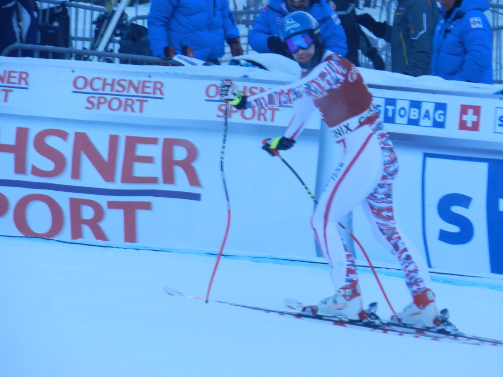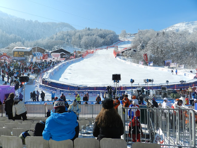 Yesterday was incredible ... As I was getting a little tired from all the skiing we've been doing since December, we decided to take 2 days off. Par coincidence le Circle Blanc de la coupe du monde de ski alpin était de passage à Chamonix ce week-end. J'était un peu déçu d'avoir manqué la descente de samedi où Jan Hudec, Éric Guay et Ben Thomsen s'étaient respectivement calssés 1er, 3ième et 5ième. Nous avons donc fait en sorte de ne pas manquer une autre belle course et nous nous sommes déplacé pour le Super-Combiné de dimanche. Chamonix, c'est un endroit incroyable, pas très loin d'où j'habite. Même si ce n'est pas très loin, les routes se trouvent dans le fond des vallées et tous ces détours font en sorte qu'il faut compter environ 2hrs pour s'y rendre. Bref, nous avons quitté Bozel à 5h30 et nous avons rejoins Chris vers 7h30 à Chamonix. Chris c'est le neveu argentin de Ramon qui est sur le circuit de la WC depuis 14 ans ! Nous nous sommes ensuite rendus à la piste de course (la verte des Houches). Après avoir patienté dans la tente des athlètes la course à prit son envol. Le downhill fût plutôt exitant étant donné que la piste n'avait pas été raccourcie pour le combiné. Romed Baumann à été le plus rapide lors de cette manche avec un temps de 2min 1sec et des poussières. Lors de la deuxième manche, le slalom, l'ambiance était survoltée car le jeune Alexis Pinturault à détenu la tête jusqu'au dernier moment ! Que de suspense.... Finalement, Baumann l'a emporté devant Pinturault et le Suisse Beat Feuz à complété le podium.