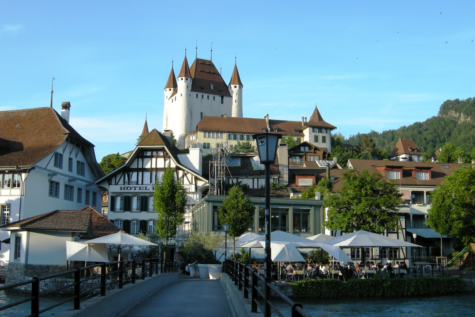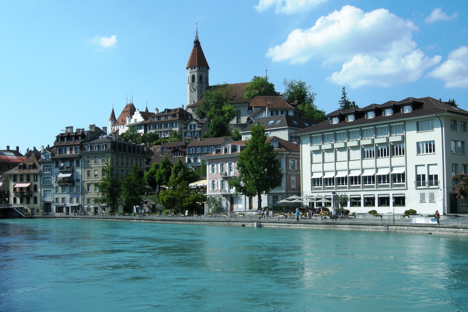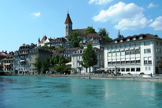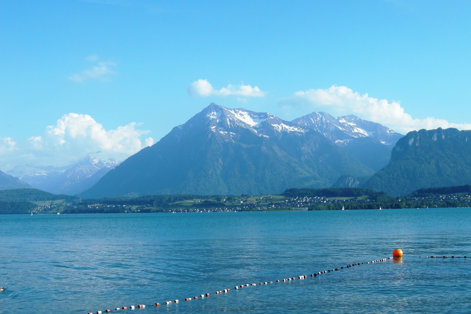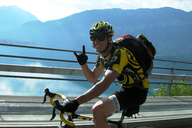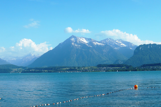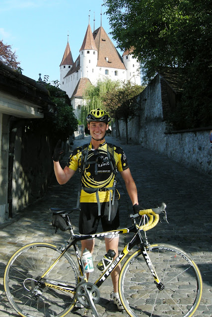 He said yes. So we started organizing the trip. We found some couch surfing in Thun for Saturday night and Zurich for Sunday night. We left Lausanne by train on Saturday morning to go to Aigle, our starting point. Starting from Aigle we had to go up a Col right away ! Its a tough start for the biking season. 1400m higher we arrived in Château d'Oex. From there everything went pretty smoothly until Thun. Thun is situated at the south of Lake Thun in the middle of the country. Its unbelievable how nice this place is. Water is so blue you can see the bottom of the lake. Its also surrounded by mountains and castles. We had a nice host in Thun. She offered us some home made strawberry jam and even better, a free place to sleep. That night we ate a good meal at the restaurant after a beer on the beach ! It was awesome.