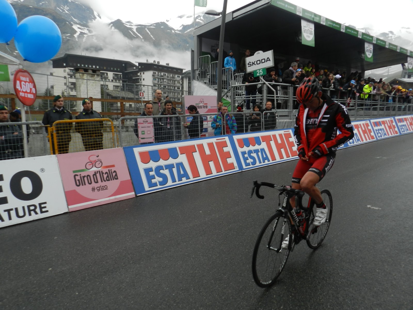 I had booked an hotel room with a view on the finish line, what an awesome place to be. After waiting more then 3 hours on the side of the finish line to make sure I had the best spot, the racers arrived. It was so cool to see an Italian winning the stage in Italy. Also, the Canadian biker Ryder Hesdjedal mnaged to grab the leader's bib again; the famous Maglia Rosa ! Unfortunately he lost it the day after. I feel really lucky because its really rare that Canadians have some awesome results on the international races. The press conference was pretty cool even if it was super crowded. I didn't get to meet Ryder as he was super busy with all the journalists around him.